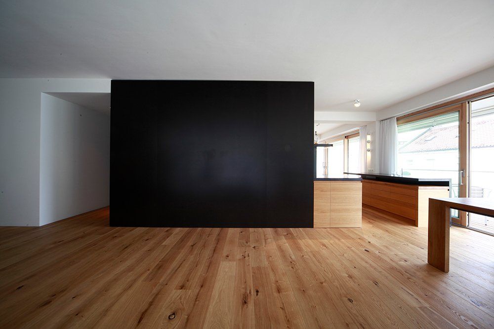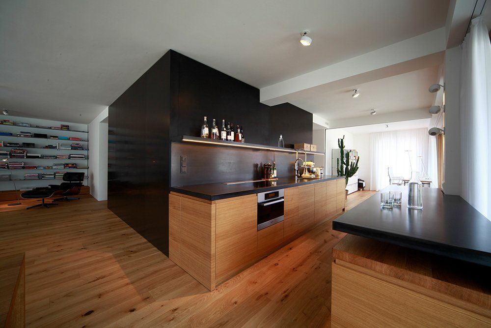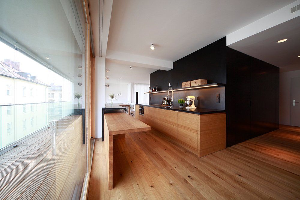 So unterschiedlich die Bewohner dieses Hauses sind, so unterschiedlich ist auch der Ausbau ihrer Wohnungen. Noch während der Rohbauphase konnten sie den jeweiligen Bedürfnissen ihrer Käufer angepasst werden. Mit ganz individuellen Küchen- und Badplanungen und unterschiedlichsten Möbelentwürfen bekam jede Wohnung ihr eigenes Gesicht und den Ausdruck ihrer Bewohner. Die hier veröffentlichten Bilder zeigen exemplarisch eine der Wohnungen – ein besonders schönes Beispiel für die hohe Wohnqualität und den anspruchsvollen Ausbaustandard des Gebäudes.
